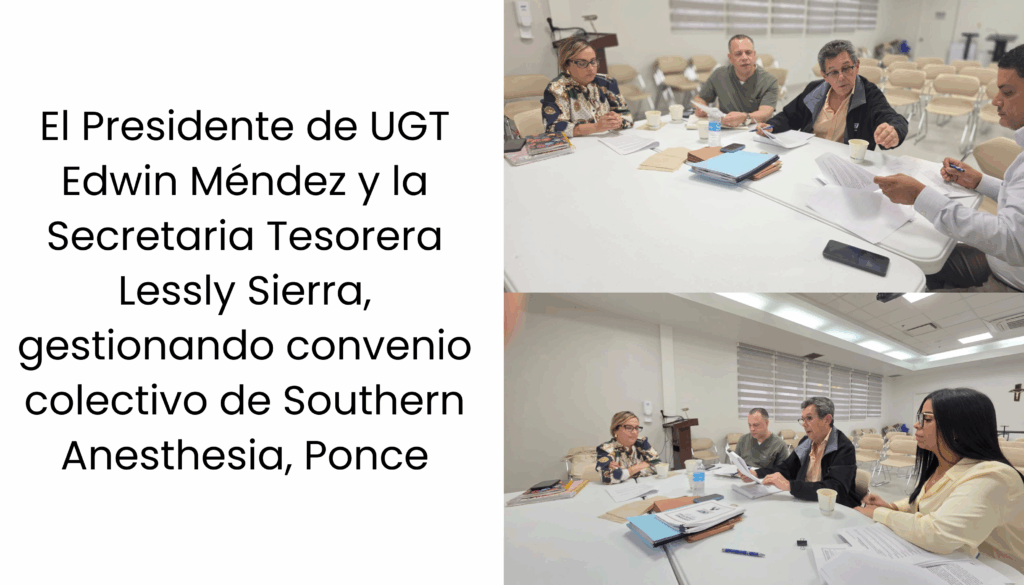 Durante la semana del 20 al 24 de octubre 2025, la Unión General de Trabajadores (UGT) continuó su labor en defensa de los derechos y el bienestar de nuestros unionados, participando activamente en varias mesas de negociación colectiva a través de la isla.